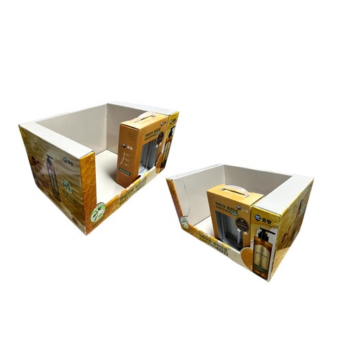 ชั้นวางเคาน์เตอร์กระดาษแข็งแบบถอดออกได้สำหรับแสดงแชมพูผลิตภัณฑ์ดูแลผิวเครื่องมือกระดาษรีไซเคิลสำหรับร้านค้าร้านค้าใช้สำหรับเสื้อผ้า